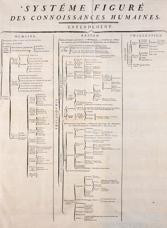 A tree is a data structure where nodes have exactly one parent node, except root nodes, which have none. A node can have any number of children. Here’s an example from the Encyclopédie, ou dictionnaire raisonné des sciences, des arts et des métiers (1752), source: Wikipedia.
